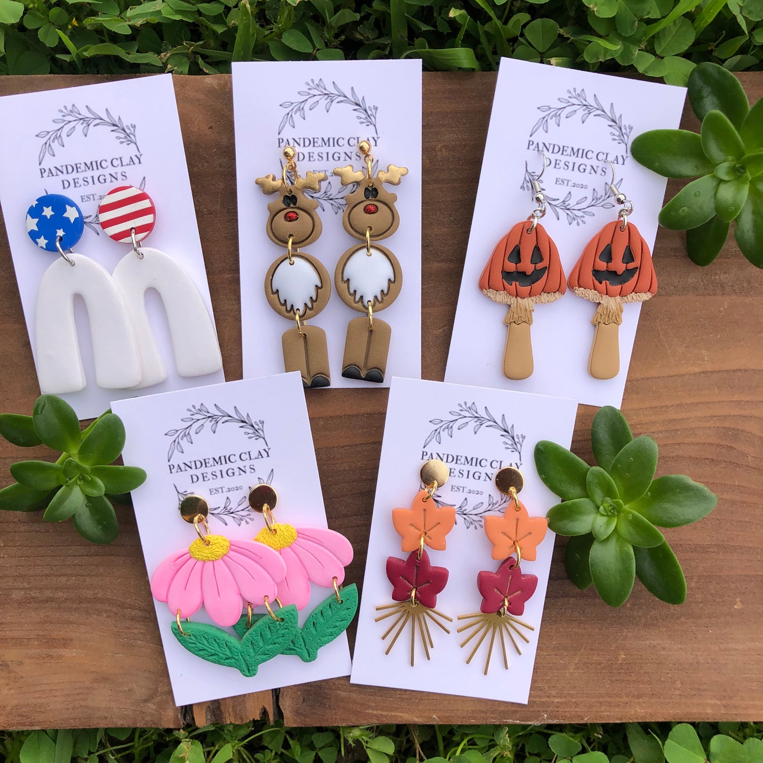 Hello! My name is Marlene and I’m the designer, creator, and heart behind Pandemic Clay Designs. My journey with polymer clay began in February of 2020, exactly one month before the global COVID-19 pandemic shut down. What started as a hobby and creative outlet, quickly evolved into something greater when my family and friends started requesting different designs after sharing a few of my creations. Since then, I have created thousands of custom orders, unique and one-of-a-kind designs and have expanded to creating other accessories aside from earrings as well. I take pride in crafting each of my pieces slowly with lots of delicacy and attention to detail. My greatest inspirations stem from the vibrant colors of everyday life, nostalgic memories from my childhood as well as intricate details from the world around me. From simple to complex details, I enjoy creating unique statement pieces for every taste. It brings me immense joy to put my wearable art pieces in your hands. Thank you so much for being here, I can’t wait to create something special for you! Want to see some behind the scenes and other fun adventures? I invite you to follow my instagram account @pandemic.clay.designs!
